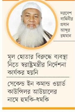 দরবেশ বাহিনীর হোতা আব্দুর রহমানের বিরুদ্ধে অভিযোগ জানিয়ে প্রধানমন্ত্রী, স্বররাষ্ট্রমন্ত্রী, আইজিপি ও র্যাব ডিজির কাছে একাধিকবার আবেদন করেছেন এক ব্যবসায়ী নেতা। তার আবেদনে যুবলীগের শীর্ষ এক নেতা এবং দুজন সংসদ-সদস্য সুপারিশও করেছেন। এ ব্যাপারে ব্যবস্থা নিতে কখনো ডিএমপি কমিশনার, কখনো উপকমিশনারকে (রমনা) লিখিত নির্দেশ দিয়েছেন স্বরাষ্ট্রমন্ত্রী। এরপরও রহস্যজনক কারণে ধরাছোঁয়ার বাইরেই আছেন কালা রফিক, ওয়াজিউল্ল্যাহ হত্যাসহ অন্তত ১০ মামলার আসামি আব্দুর রহমান ওরফে হুজুর ওরফে জিনের বাদশাহ ওরফে দরবেশ। ২০০২ সালে চাঁদাবাজির সময় তাকে একবার গ্রেফতার করেছিল মতিঝিল থানা পুলিশ। যুগান্তরের সরেজমিন অনুসন্ধান, প্রধানমন্ত্রী ও স্বরাষ্ট্রমন্ত্রীর কাছে করা অভিযোগের নথি থেকে জানা গেছে উল্লিখিত সব তথ্য।